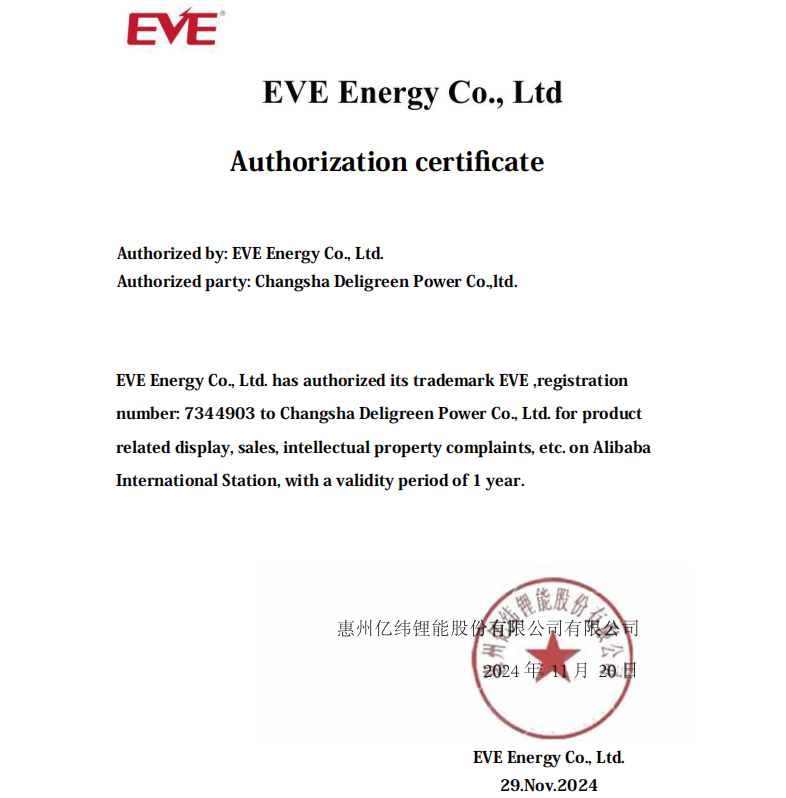 ---Deligreen power with the EVE fatory authorization, only offer grade A, including other items, what we are looking for is a longer term business relation, customer comes first, quality comes first.